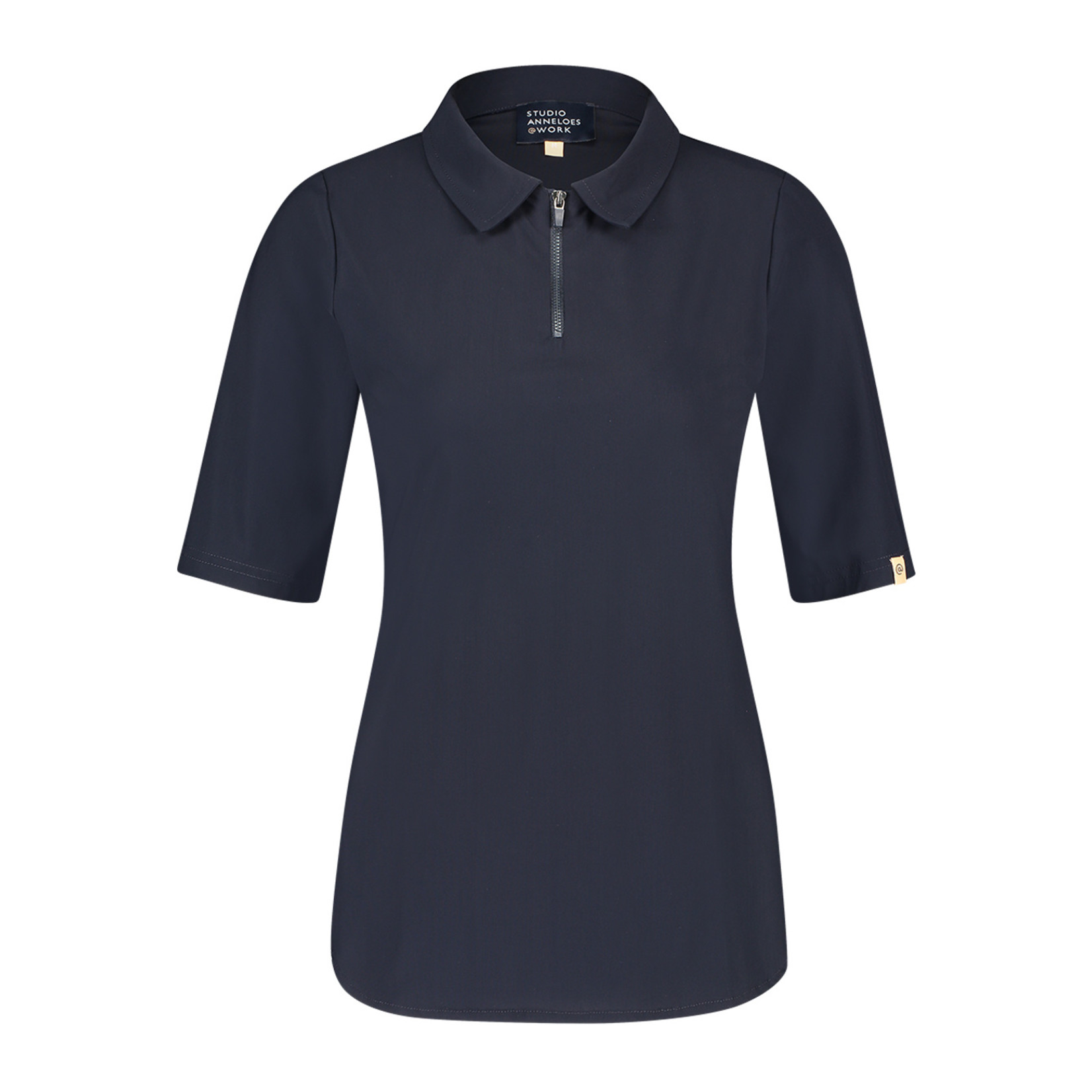 The super comfortable Deventer shirt from Studio Anneloes. The shirt with short sleeves has a polo collar and a zipper on the front.
