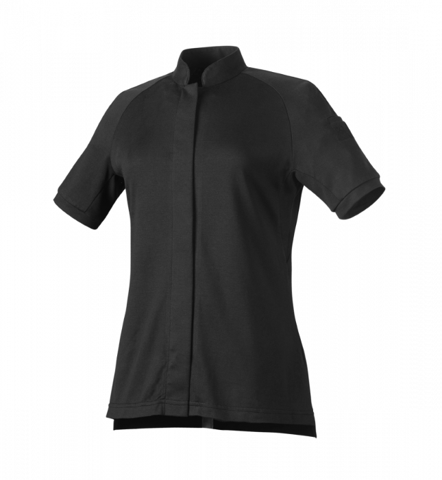 Fitted jacket Officer collar Hidden snap buttons Manches raglan Breathable mesh panel under the arms Welt pocket on left sleeve