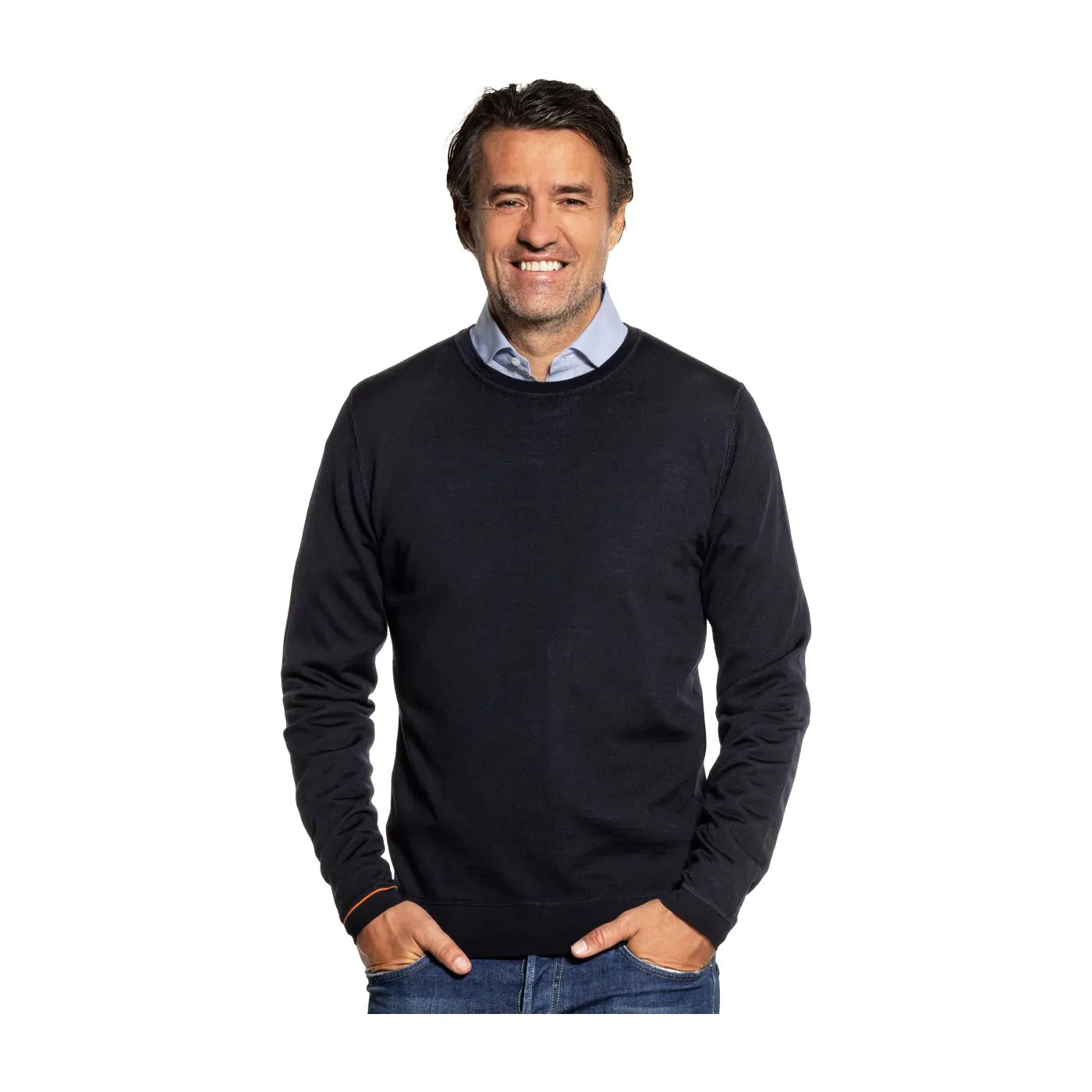 Joe Crew heeft door de mooi aangesloten hals en de stoere afwerking van de boorden een net iets sportievere look. De fijne breiwijze geeft de trui een slanke uitstraling zonder overbodige plooien.
