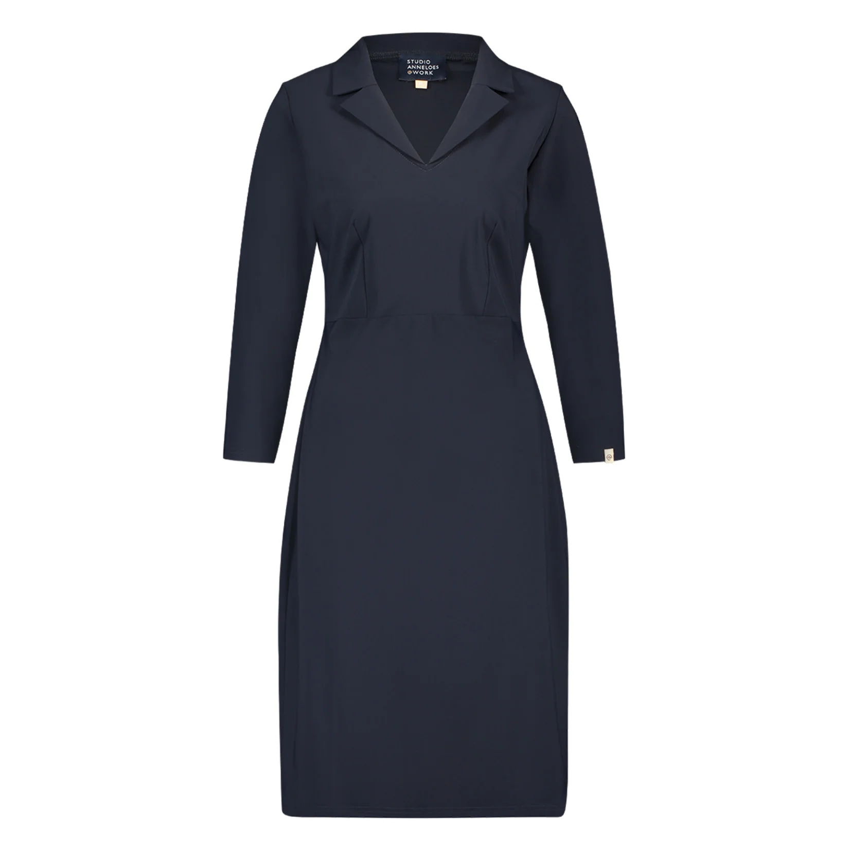 The Sneek company dress from Studio Anneloes @work is the ideal dress for the office. Due to the elastic medium fabric thickness (2) travel quality, this dress offers ultimate wearing comfort. The regular fit dress is available in dark blue and black.